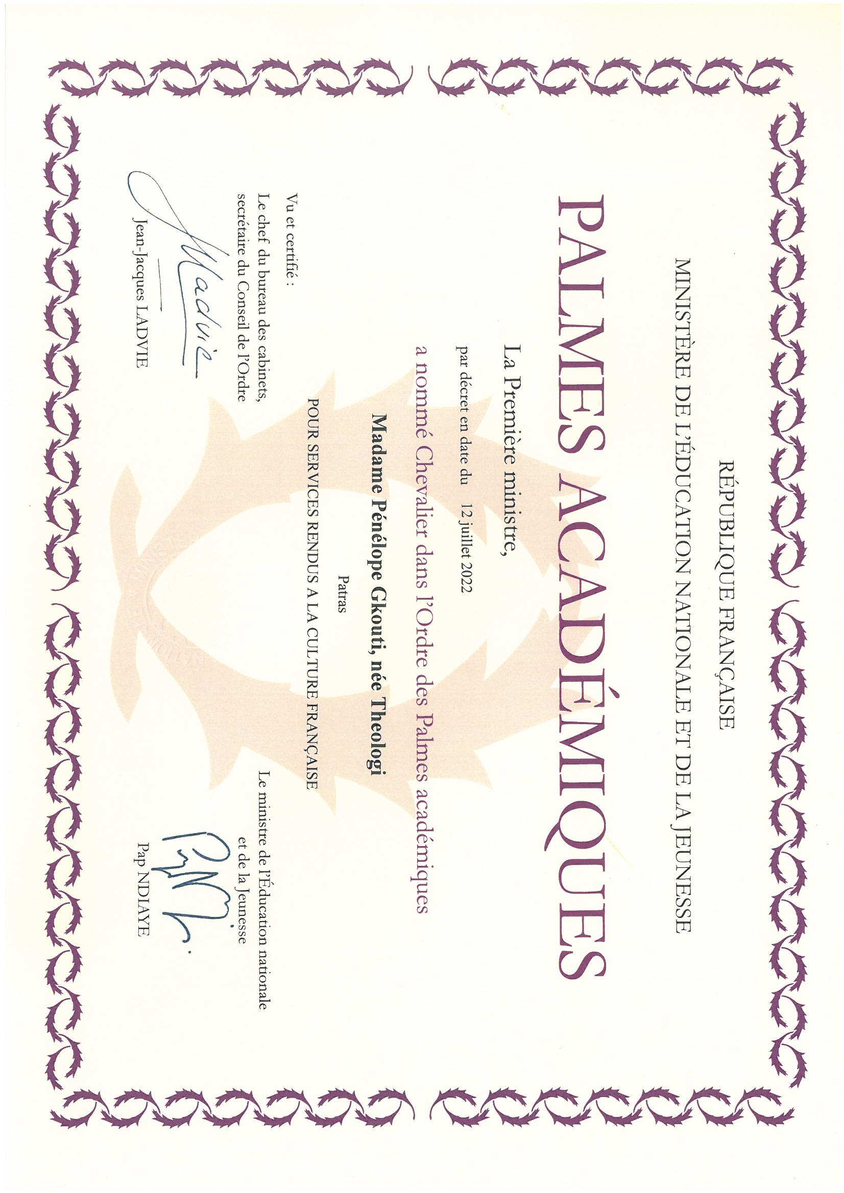 Με διάταγμα της Πρωθυπουργού της Γαλλικής Δημοκρατίας με ημερομηνία 12 Ιουλίου 2022, η υπεύθυνη του Μουσείου Επιστημών και Τεχνολογίας κα Πένυ Θεολόγη-Γκούτη χρίστηκε "Chevalier dans l' Ordre des Palmes académiques", για την προσφορά της στον πολιτισμό και στις επιστήμες.